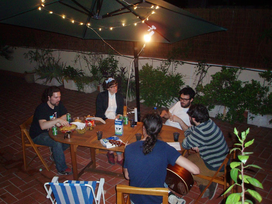 Aquesta foto és del dia 2 de maig de 2015. En Sergio és el noi de l'esquerra. Vivia amb tres companys de pis a la meva escala. Tots quatre són amics de'n Joan, el meu fill. Bons nois.