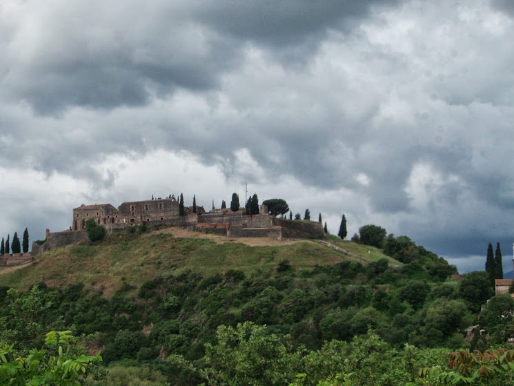 En sortir de Barcelona, quan hem agafat el tren, ens feia un dia fantàstic. Hem passejat pel poble i hem pujat al castell. A dalt al castell hi ha un noi que fa la visita guiada per 4€ per persona i que explica la història i com era la vida dels soldats dins el castell. Ho fa molt bé i se li pot preguntar sobre el tema perquè en coneix les respostes. Dons resulta que ens ha plogut durant tota la visita. Tot i que ha intentat fer les explicacions sota cobert, al final ens hem mullat del tot.