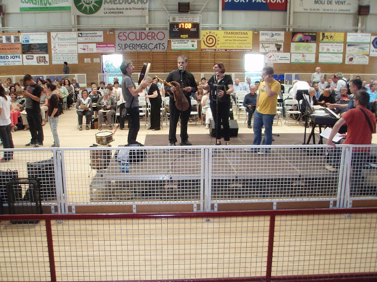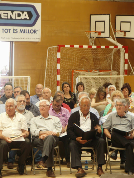 Avui s'ha commemorat el centenari de la primera escola d'estiu a Catalunya. Es veu que, per amenitzar l'acte, havien contractat un grup, però van haver de canviar el dia i no hi van poder anar, així que la Consellera va pensar... "Calla, si jo, entre tota aquella colla de dropos, tinc una coral!" i dit i fet, busquem tres cançons del repertori, que ens queden més o menys bé ("Ave Verum", "El Rossinyol" i la darrera cançó de Els Miserables "No sentiu la gent cantar?" que sempre queda molt revolucionària), ens vestim de blanc i cap al Palau falta gent!