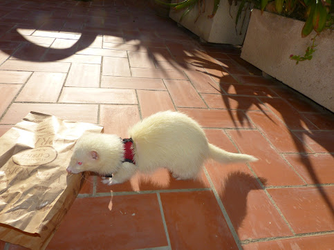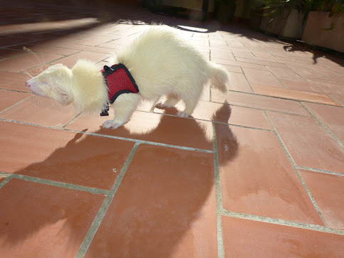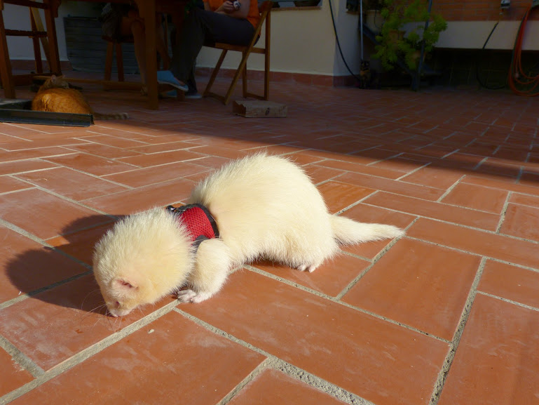 De tant en tant, l'Ariadna els posava l'arnés per no pèrdre-les i les treia a passejar pel pati exterior, que els toqués el sol i l'aire. Aquí unes fotos d'en Simon: