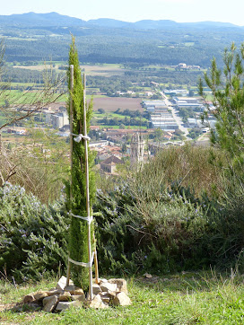 Aquest setembre, quan l'Anna M. i jo vam ser a Moià de vacances, vam plantar un xiprer dalt el turó de la Creu. Volíem que fós una cosa discreta, que no es notés gaire, però a la primera tempesta, es va doblegar i va quedar tombat a terra, total que vam haver de clavar unes canyes a terra i l'hi vam lligar. Tota la discreció a fer punyetes. Però sembla que li va anar bé perquè al cap d'un mes estava tot eixerit.