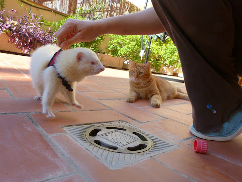 Vam posar les fures al pati d'estendre. El primer dia va ser horrible, van descobrir forats que no sabíem que existien, van passar a casa els veïns, van remenar coses que ni recordava que tenia. A més, fèien molta pudor i es cagaven per tots els racons. Passat el primer dia d'exploració, la cosa es va anar normalitzant, es van acomodar al cubell de la roba bruta i vam establir una rutina.