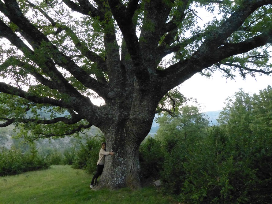Vam anar a veure el roure més gran del lloc i ens va voler seguir.
