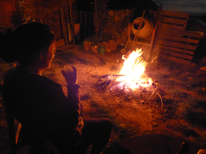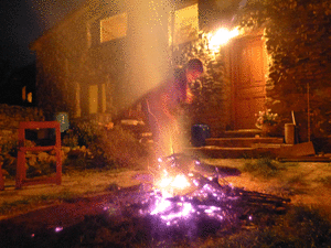 A la nit del dia abans de tornar vam fer un foc a terra a l'era, i el vam regar amb un vinet molt bo.
